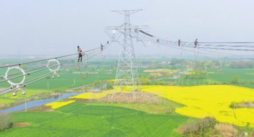 近日,在安徽省芜湖市繁昌区境内,电力工东说念主抢持春季成心天气,奋战在甘肃—浙江±800千伏特高压直流输电工程施工建树一线,保险动力通说念重心工程进程。新华社