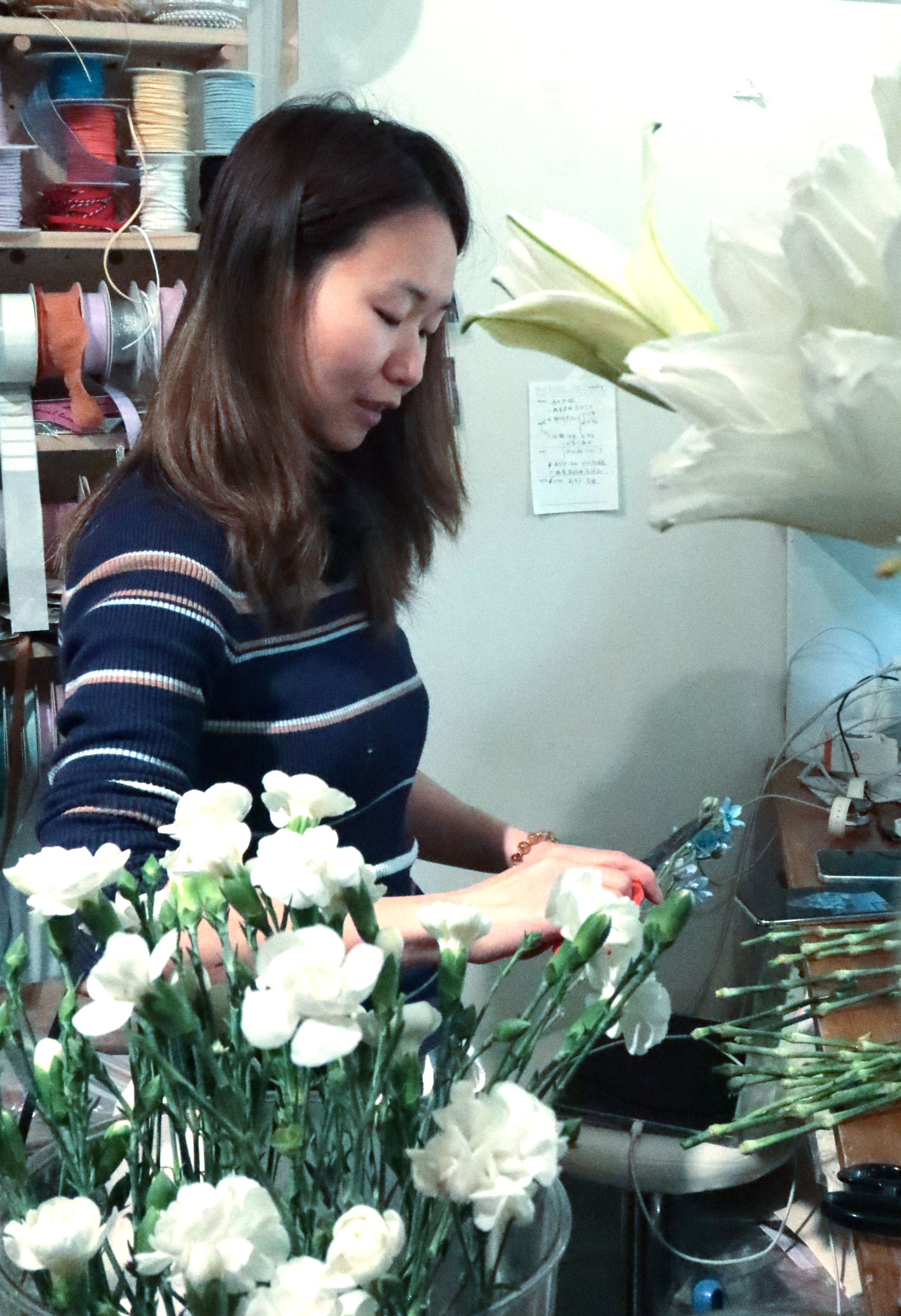 因为是我方一个东谈主开店,元气心灵有限,向媛莫得亲身去批发市集进货,而是关连了固定的供货商,需要什么花,供货商就会提前准备好送过来,节俭了不少时期。目下,花店的客户主要来自附近住户和收罗平台,线上线下的订单大略各占一半。