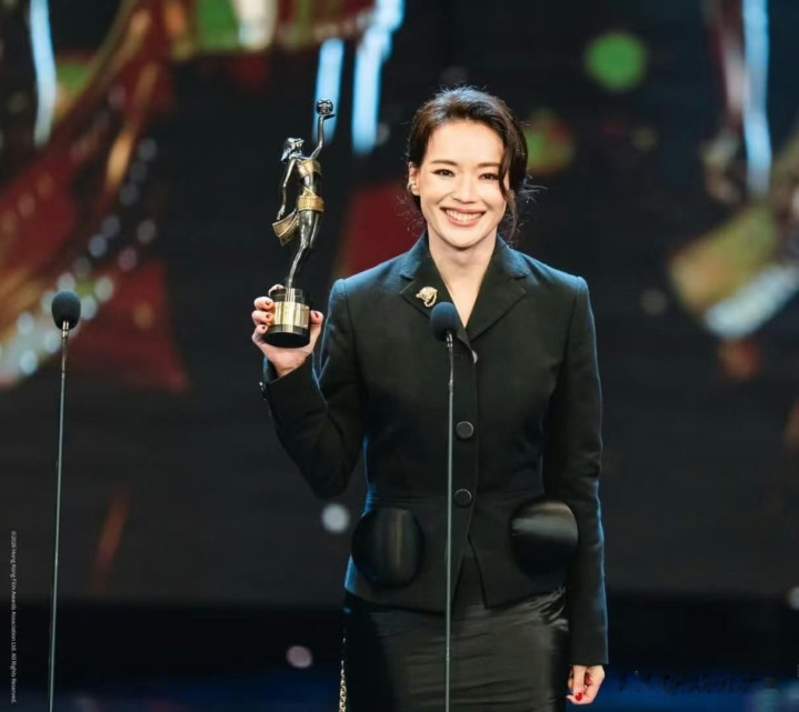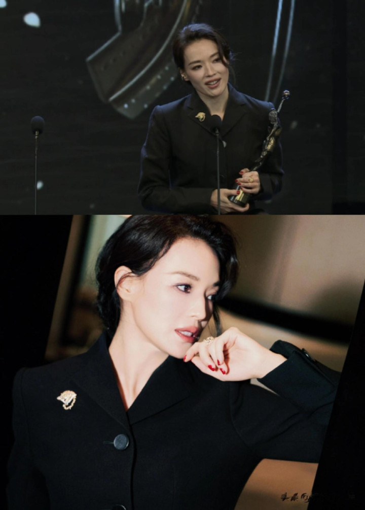 真钱三公 舒淇亮相金像奖红毯, 穿玄色西服套裙发簪低挽, 好意思得明媚又气质