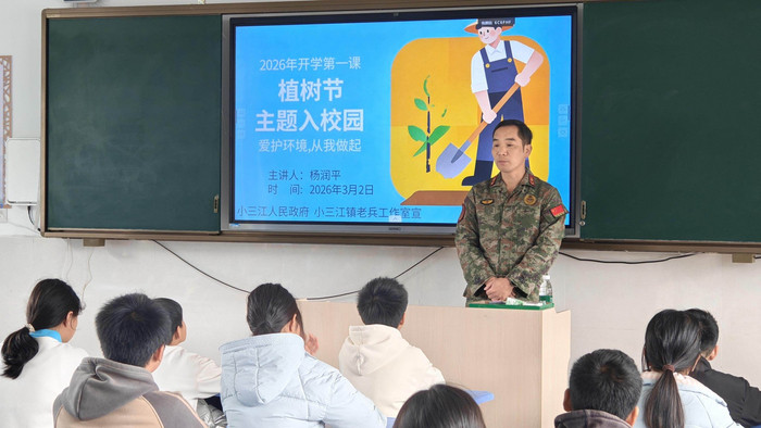 春风拂壮乡,植绿正其时!3月2日上昼,清远连山壮族瑶族自治县小三江低级中学的课堂里,迎来了一位迥殊的“憨厚”——广州市花齐区驻连山壮族瑶族自治县小三江镇帮镇扶村干事队队员、退役军东说念主杨润平,他以一堂别开生面的植树节主题开学第一课,将绿色发展理念、乡村振兴干事与家国担当心扉,深深种进了每一位壮乡少年的心里。