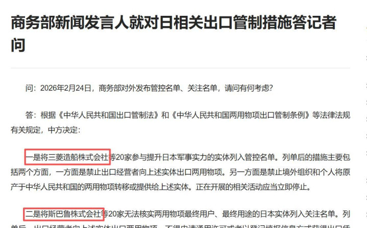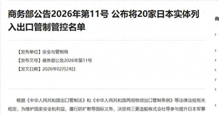 日本照旧思冲刺修宪,推动重新武装?话说转头,真要作念得更激进些,历史的账也得少量点重新算了。商务部此次的管控手脚,本便是未雨野心,毕竟这些日企背后攀扯着日本军工产业链,名义粉碎不代表风头往常。三菱、川崎这些公司以后思要中国居品,门王人莫得。交易层面解不了历史旧账,这管控公告自公布本日2026年2月24日起成效,当今如故不是日本喊两句友好就能哄骗往常的期间了。