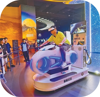 参加两岸疏导行动的台湾后生在广东珠海天外中心体验互动形貌。