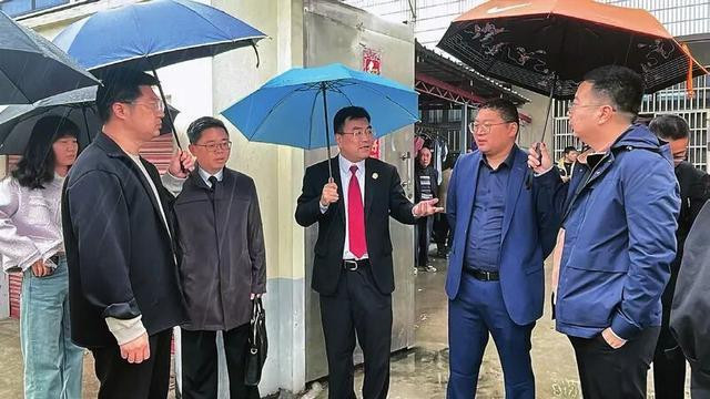 南京环境资源法庭副庭长姜立(右三)就一王人涉环境欺侮案件进行实地造访供图受访者