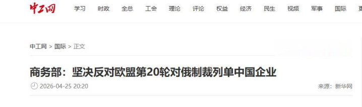 没料想此次的反击来得又快又猛,根柢没给对方留任何幻想的余步。4月24日前后,看似矛盾的戏码在一天之内聚首献艺。先是外媒放出风声,欧盟在第20轮对俄制裁有打算中,悄悄将几家中国企业列入了黑名单。